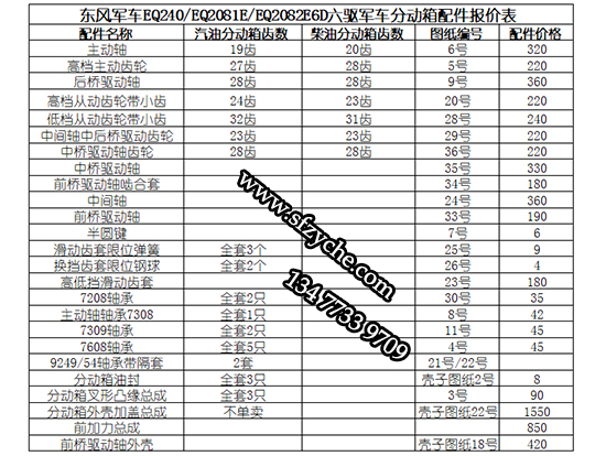 東風(fēng)軍車(chē)EQ240/EQ2081E/EQ2082E6D六驅(qū)軍車(chē)分動(dòng)箱常規(guī)易損件清單價(jià)格表: