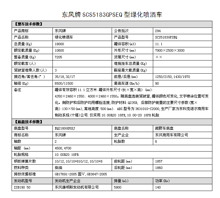 潤(rùn)知星牌SCS5183GPSEQ四驅(qū)越野消防灑水車,東風(fēng)越野四驅(qū)森林消防供水車采用東風(fēng)D913新款駕駛室(可選裝老款153駕駛室),4*4驅(qū)動(dòng),ISB190 50國(guó)五發(fā)動(dòng)機(jī),4500mm/4700mm軸距,東風(fēng)六檔變速箱,10.00R20鋼絲胎,東風(fēng)商用車前后橋,罐體采用優(yōu)質(zhì)碳鋼QB235板材,罐體容積11.1立方,前沖后灑,側(cè)噴,后置工作平臺(tái)帶消防水炮,可選裝消防炮,消防泵等專用消防設(shè)備。主要用途:中國(guó)森林林業(yè)部門的森林消防滅火供水及利用車載消防泵消防炮進(jìn)行遠(yuǎn)程消滅森林火災(zāi)。