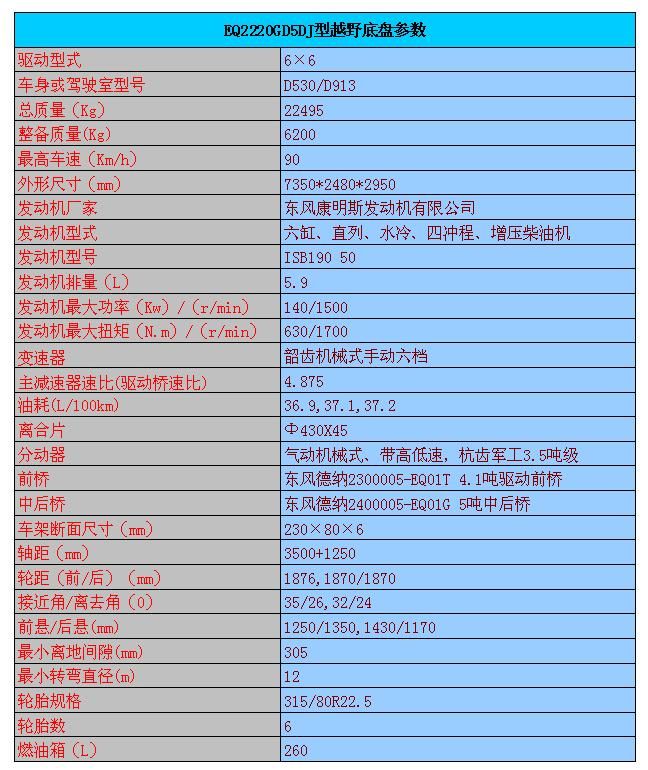 潤(rùn)知星牌SCS5220XXYEQ型廂式運(yùn)輸車簡(jiǎn)介:六驅(qū)越野箱式應(yīng)急保障車采用東風(fēng)EQ2220GD5DJ型越野汽車底盤,東風(fēng)D530寬體一排半駕駛室,帶空調(diào),6*6驅(qū)動(dòng),康明斯190馬力發(fā)動(dòng)機(jī)正宗國(guó)五,機(jī)械式六檔變速箱,315/80R22.5 越野輪胎,帶備胎,ABS,標(biāo)準(zhǔn)車廂尺寸:4900×2400×2200(mm)。