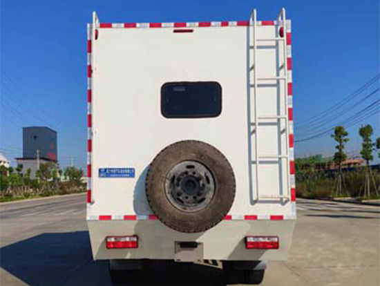 三、東風四驅(qū)越野宿營車, 4驅(qū)越野宿營車用途:適用公安、特警、公安、邊防、衛(wèi)生、交通、礦山、地質(zhì)、軍隊等部門]長期野外作業(yè)、勘察、救援、搶險、救災等宿營用,箱體空間利用大化。內(nèi)部配置:配備前儲物柜、后儲物柜、液晶電視機應急燈、頂燈、頂置空調(diào)、床墊、被褥等。選裝配備8組豪華折疊臥鋪、未鋪上下梯、安全保險帶、電源插口等,細節(jié)精致。外置燃油加熱器、頂護欄、前爬梯、隱藏抽拉梯、專用房車門、專用玻璃滑窗、警示燈等。