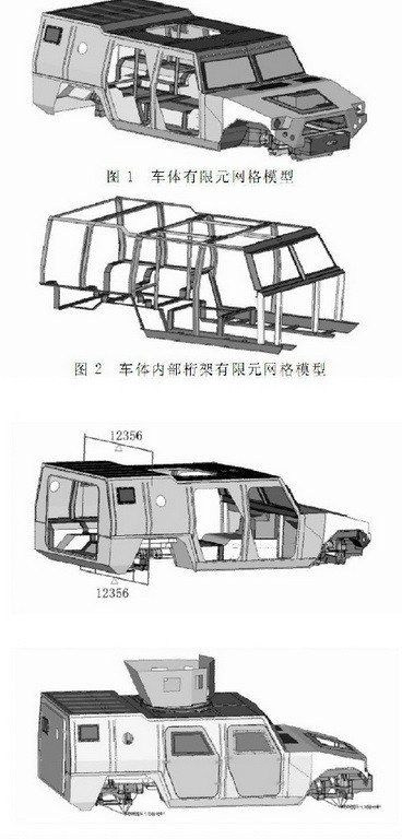 上圖是1代猛士裝甲車車身結(jié)構(gòu)簡圖(由于長軸2代猛士仍然處于測試狀態(tài),引用1代猛士裝甲車結(jié)構(gòu)進行比對說明),為了提升整車鋼性以及安全防護能力,上部分的車身焊接采用單獨全封閉結(jié)構(gòu)(側(cè)圍、頂蓋、地板預(yù)先焊裝一體)。在A/B/C/D柱之間焊裝多條加強筋保證縱向結(jié)構(gòu)強度。與美軍現(xiàn)役悍馬裝甲車(通過對基型車換裝裝甲板)不同的是,1代猛士裝甲車原廠狀態(tài)就采用可防護7.62毫米口徑穿甲彈在100米內(nèi)全向攻擊、12.7毫米口徑機槍彈正面攻擊、3公斤TNT當量爆炸物地面攻擊、以及105毫米口徑榴彈破片50米內(nèi)攻擊的均質(zhì)裝甲板。