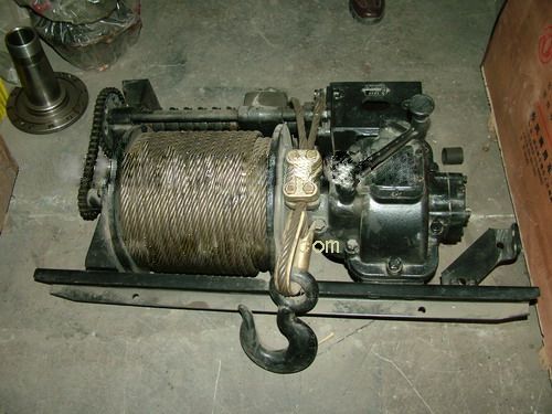 ——這種絞盤和船用的一樣,但它是直放而非一般的橫放形式。更特別的是,它上面沒有繞上鋼纜或麻繩,而僅有一個(gè)圓柱形的絞動(dòng)鼓。使用這個(gè)PTO時(shí)比現(xiàn)代的絞盤還要簡單,只要開著引擎并把絞盤旁邊的波棍推進(jìn),圓柱體馬上會自轉(zhuǎn)。此時(shí)再將麻繩套在絞動(dòng)鼓上一二圈,繩的另一端則以人手把持著,操作人用力拉,麻繩便會隨著絞動(dòng)體一起轉(zhuǎn)。只要操作人不用力拉,繩子一放松,絞動(dòng)鼓則自行旋轉(zhuǎn)但不會帶動(dòng)麻繩。它的缺點(diǎn)是不能倒轉(zhuǎn)。