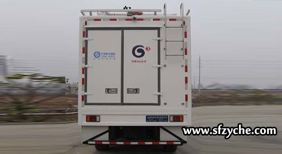 1.隨底盤選裝駕駛室頂部空調(diào);2.車后部加裝后梯,后梯的下半部分可拆卸,車輛行駛時可放置廂內(nèi); 3.主要專用裝置:移動通信基站天線、升降塔;4.專用功能:確保在熱點區(qū)域臨時增加同時提供數(shù)個基站的話務量支持;5.側(cè)面防護裝置的材質(zhì)為鋁合金,連接方式為螺栓連接;后下部防護裝置的材質(zhì)為Q235,連接方式為螺栓連接,斷面尺寸為100mm×50mm,離地高度為530mm
