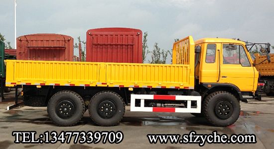 2、詳細(xì)配置:平頭一排半駕駛室,6*6驅(qū)動(dòng),康明斯190馬力,韶齒6檔變速箱,斷氣彈簧制動(dòng),貫通式中后驅(qū)動(dòng)橋,12.5R20越野胎,軸距 3500+1250mm,加厚雙層大梁,貨箱4850mm,帶軍用保險(xiǎn)杠。(新款仿天錦駕駛室加價(jià)1.5萬(wàn)元)東風(fēng)越野卡車:www.aaxwn.com