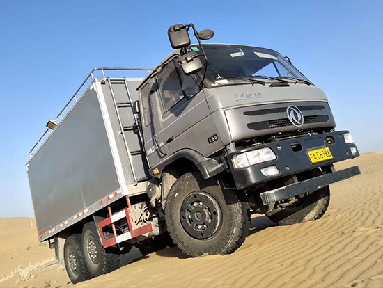 東風(fēng)六驅(qū)國五越野廂式車簡介:采用東風(fēng)原廠六驅(qū)國五越野底盤EQ2220GD5DJ型,駕駛室為老款153,新款D913兩種可以選擇,康機(jī)190馬力帶增壓,機(jī)械式六檔變速箱,3.5噸軍檢分動(dòng)箱,4.5噸雙聯(lián)式軍用驅(qū)動(dòng)前橋,5噸軍用貫通式雙后橋,方向助力,離合助力,前橋介入高低檔均采用電控式,315/80R22.5越野輪胎,軸距3500+1250mm,ABS,隨車工具及備胎各一套。