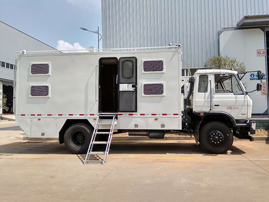 三、東風四驅越野宿營車, 4驅越野宿營車用途:適用公安、特警、公安、邊防、衛(wèi)生、交通、礦山、地質、軍隊等部門]長期野外作業(yè)、勘察、救援、搶險、救災等宿營用,箱體空間利用大化。內部配置:配備前儲物柜、后儲物柜、液晶電視機應急燈、頂燈、頂置空調、床墊、被褥等。選裝配備8組豪華折疊臥鋪、未鋪上下梯、安全保險帶、電源插口等,細節(jié)精致。外置燃油加熱器、頂護欄、前爬梯、隱藏抽拉梯、專用房車門、專用玻璃滑窗、警示燈等。
